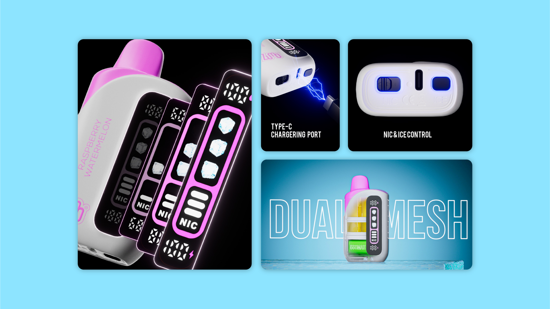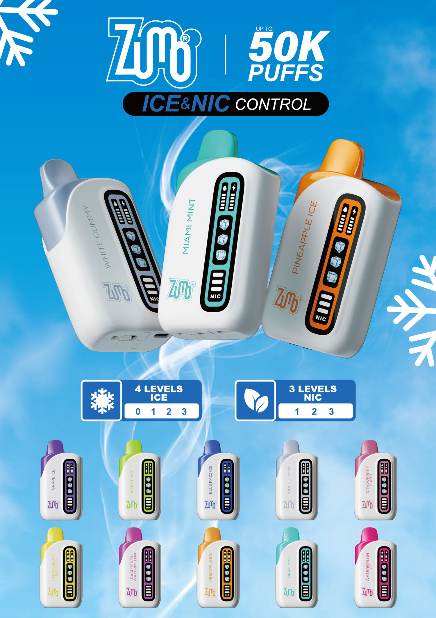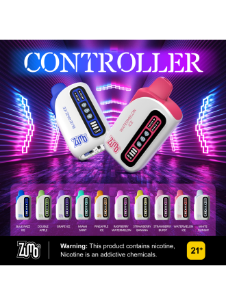 Zumo Controller Smart Vaping. You can control the ice degree level and nicotine level to freely control the intensity. With a Digital Screen, 50K puffs in ECO Mode, and 25K puffs in TRU Mode. Equipped with a 1000mAh battery and 20ml E-juice. Dual Mesh Coil.