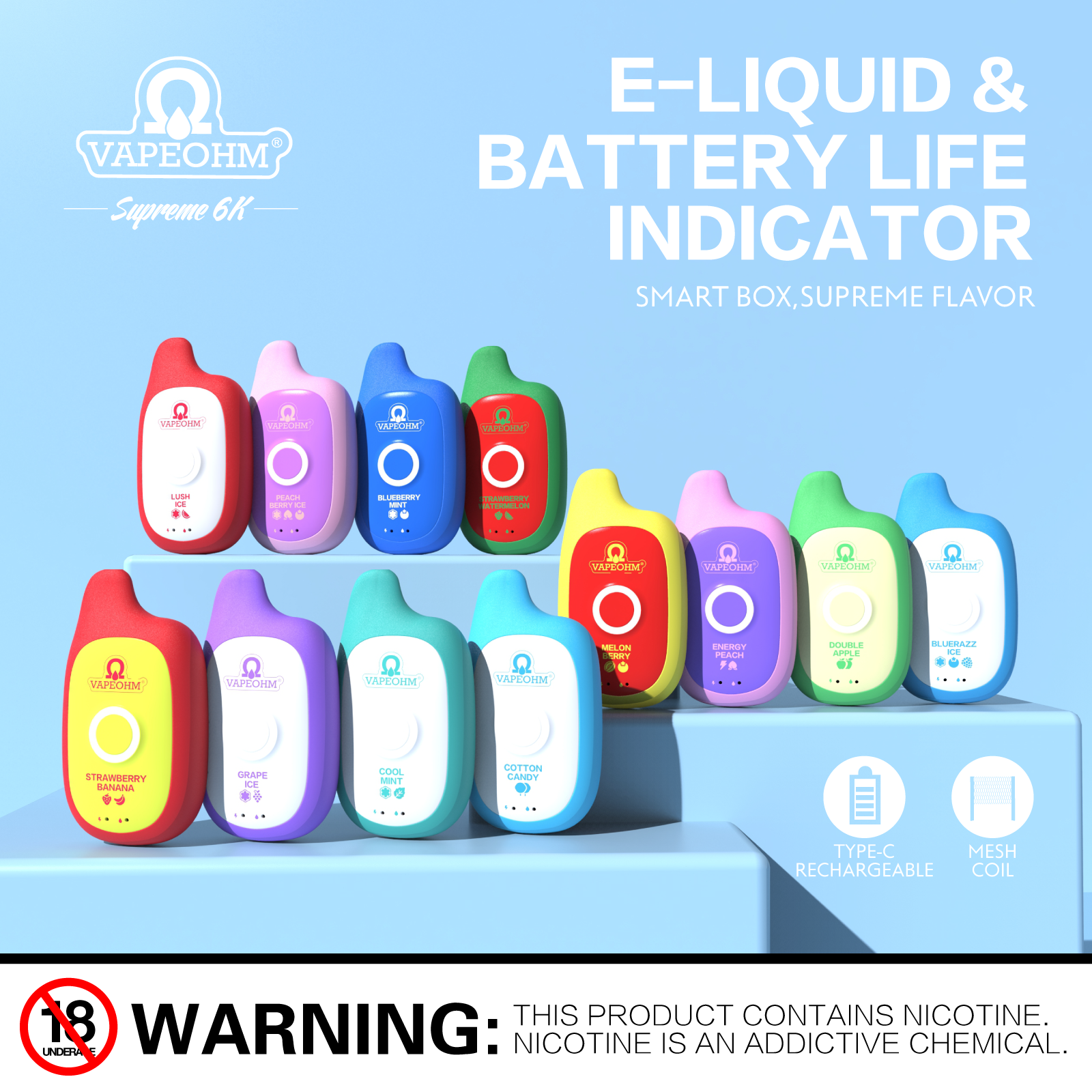 WARNING: This product contains nicotine. Nicotine is an addictive chemical. Our products are restricted to adults 21+ only.